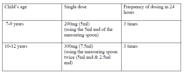 If in children aged 7 to 12 years this medicinal product is required for more than three days, or if symptoms worsen, a doctor should be consulted. This product should only be given to children who weigh more than 20kg.