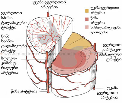 - სეგმენტური ნეკნთაშუა და წელის არტერიებიდან (ТhЗ მალის სხეულის დონეზე დაბლა).