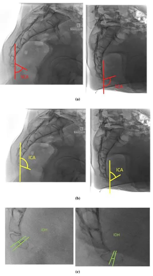 Рентгеновские снимки пациентов с кокцигодинией в положении стоя и сидя.