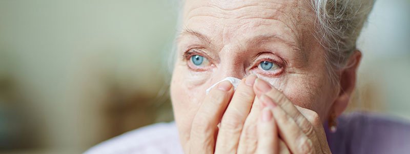 Dry eye syndrome (DES) (also called keratoconjunctivitis sicca [KCS], dry eye disease, and dysfunctional tear syndrome) develops when the eyes are unable to produce a sufficient amount of tears to keep the eyes lubricated. Women are more likely to develop this condition than men, and it becomes more common as we age. Symptoms include irritated or burning eyes, a feeling of something in the eye, and blurred vision. Artificial tears can help relieve symptoms in many cases. There are also procedures that can block tear ducts to keep more tears in the eye, or use of prescription eye drops that help increase tear production.