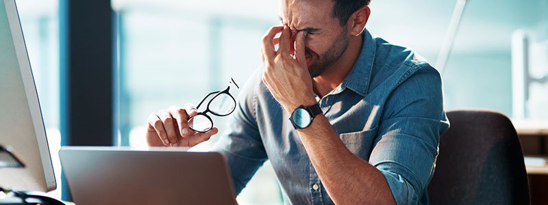 Eye strain, or eye fatigue, describes a group of symptoms that occur after extended use of the eyes. Causes of eye strain include staring for an extended time at digital devices (computers, cell phones, or video games), reading, driving, or activities in low light. Symptoms of eye strain include irritated eyes, headaches, blurred vision, increased sensitivity to light, or eye dryness. Eye strain is usually not serious, but if it occurs frequently it may be a sign of an underlying medical condition. See your doctor if your eye strain does not go away after you remove the eye stressors.