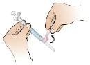 9. Remove 1 mL administration syringe from package. Attach the 1 mL syringe to vial adapter of reconstituted solution by twisting the syringe tip onto the vial adapter until you feel a slight resistance.