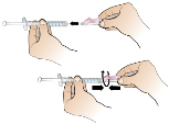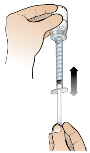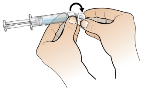 Remove clear needle shield from prepared needle by holding syringe in one hand and carefully pulling shield straight off with the other hand.