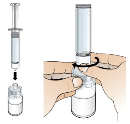 Note: From a microbiological point of view, the product must be used immediately after reconstitution. If reconstituted product is not used immediately, the syringe should not be removed from the vial adapter to maintain microbiological integrity.