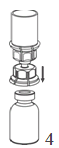 5. With one hand grasp the product-side of the Mix2Vial set, and with the other hand grasp the solvent-side and unscrew counterclockwise the set carefully into two pieces.
