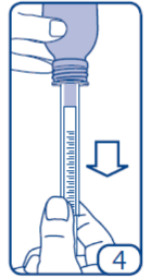 • Still holding the pipette in place, pull the piston down to the graduation mark corresponding to the quantity in millilitres (ml) prescribed by your doctor (figure 4).
