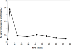 Figure 1: Leuprorelin plasma levels [ng/mL] after s.c. application of Staladex in male patients