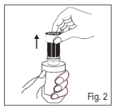 2. Remove the tamper-proof base ring by retaining the cap on the container (Fig.2).