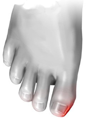 Вросший ноготь — это заболевание, при котором отмечается врастание ногтевой пластинки, как правило, большого пальца стопы в мягкие ткани ногтевого валика, что приводит к появлению боли и хронического воспаления.
